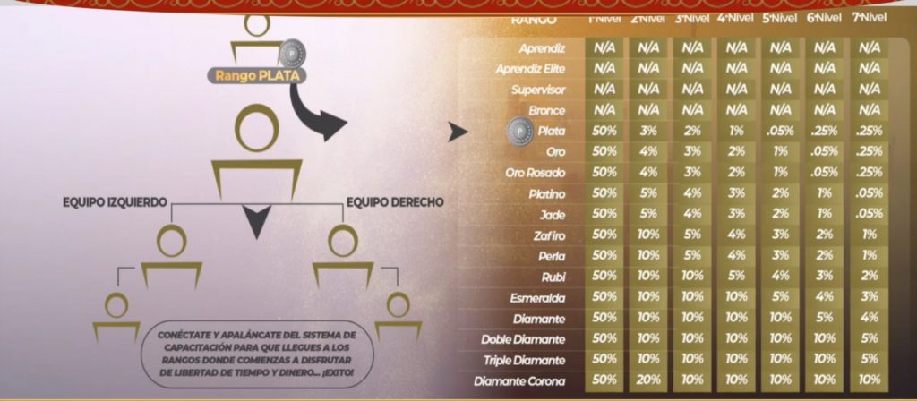 El plan de compensación de la empresa es el más justo y agresivo, el reparto de comisiones está distribuido equitativamente para el que acaba de iniciar, para los rangos intermedios y para los más altos rangos (a nivel frontal, intermedio y a profundidad).